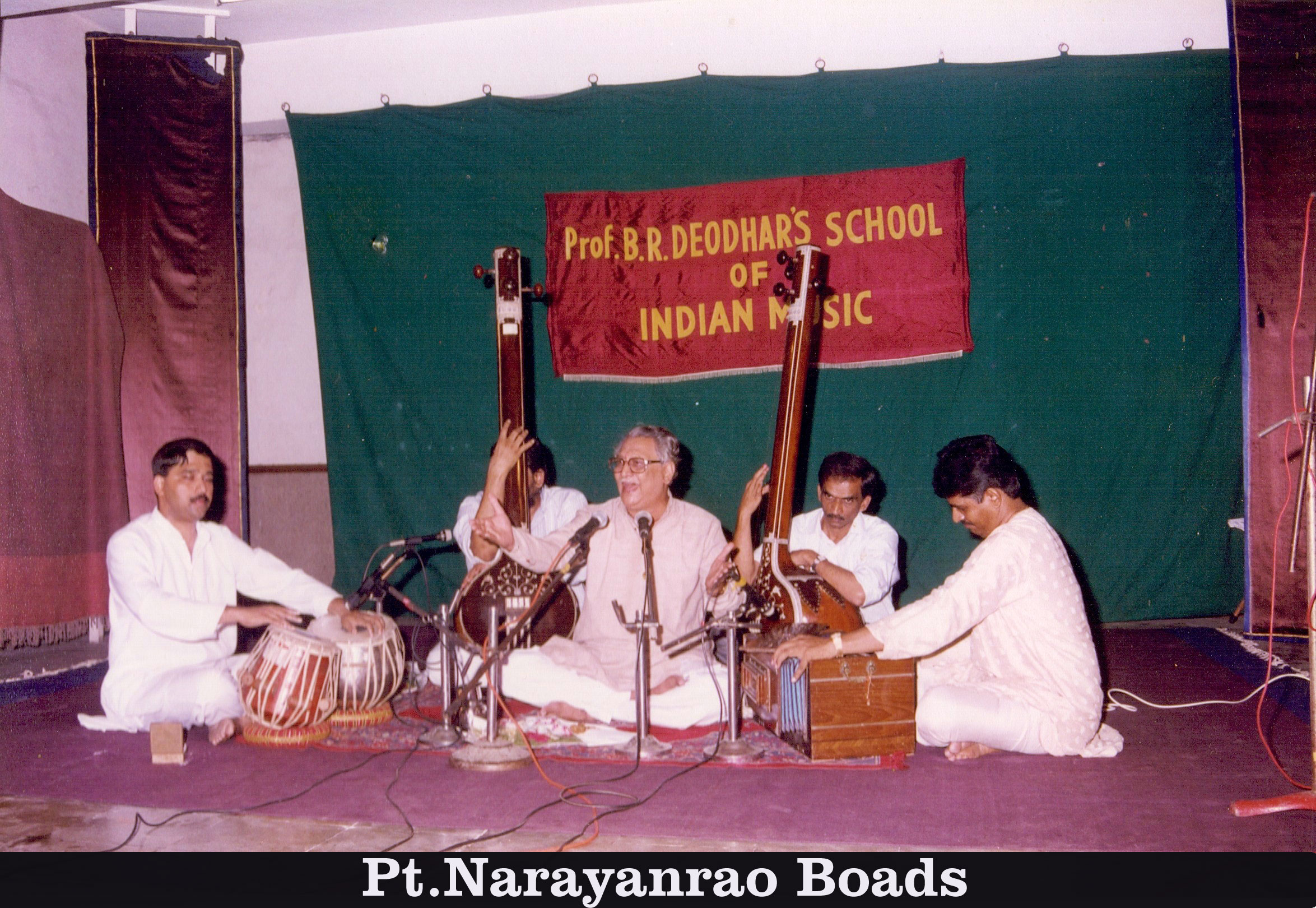 Deodhar was born in Miraj in present Sangli district of Maharashtra on 11 September 1901.[1] He started his musical training with Nilkanth Buwa Alurmath, the guru bhai of noted singer and educator Vishnu Digambar Paluskar (1872–1931), and a disciple of Balakrishnabuwa Ichalkaranjikar of Gwalior gharana Thereafter, he also received training under Abdul Karim Khan of Kirana gharana and Vinayakrao Patwardhan, another disciple of Paluskar.[3] Later he joined the Gandharva Mahavidyalaya, where he became a leading disciple of Vishnu Digambar Paluskar, the founder of institution. Deodhar was the only student of Paluskar who was allowed to also pursue formal education. Thus after matriculation he also pursued higher education and later received a B.A. degree. He also studied Western classical music.